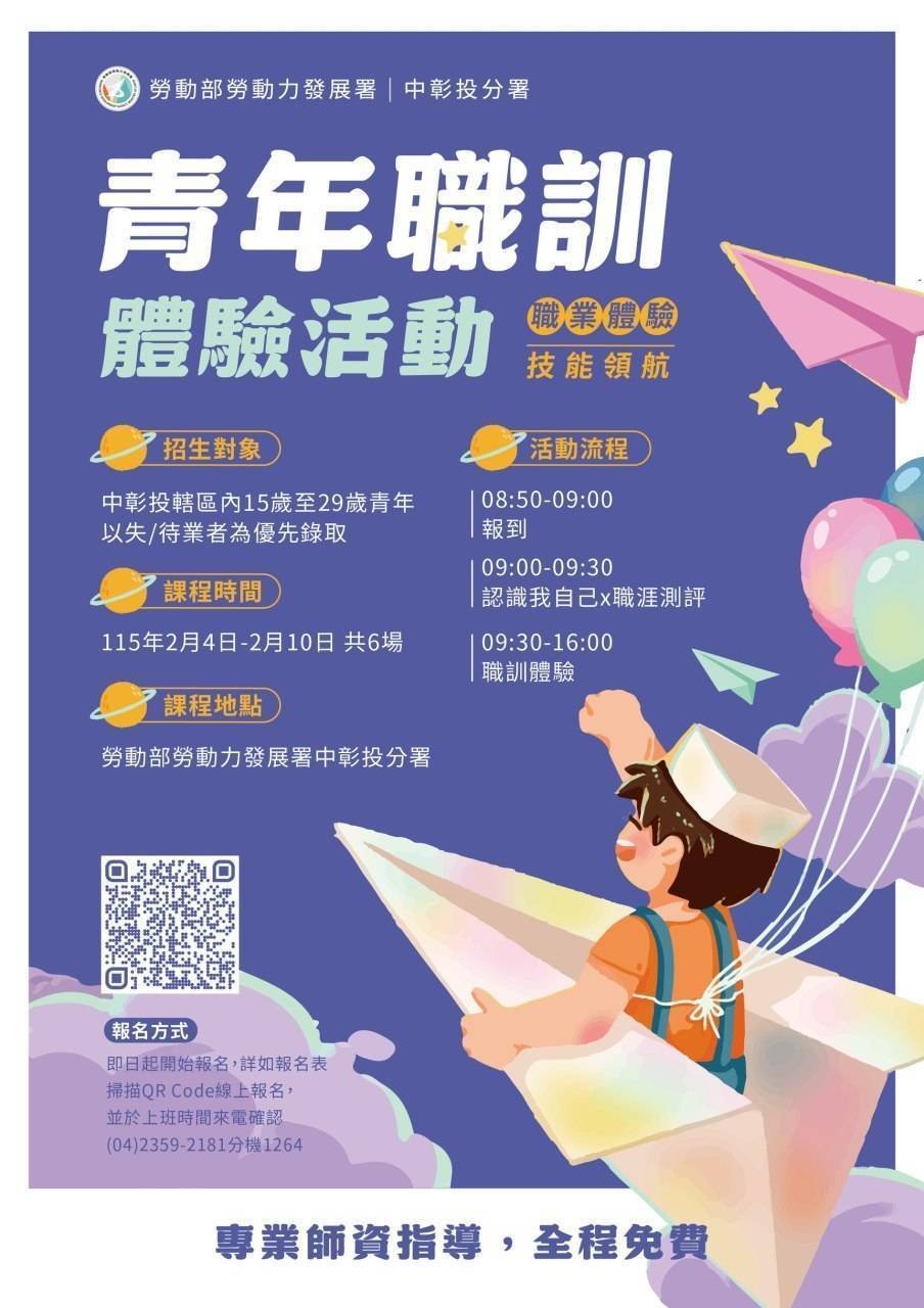 中彰投分署表示,本次職訓體驗課程緊扣重點產業發展趨勢,讓青年在模擬職場的訓練工場中,透過實際操作了解產業工作環境與所需技能,並搭配職涯測評工具,協助青年釐清自身興趣與未來職涯方向。若體驗後對相關職類產生學習興趣,也可銜接報名分署辦理的職前訓練課程,循序培養專業技能,並在結訓前提供就業輔導,協助青年順利接軌職場。