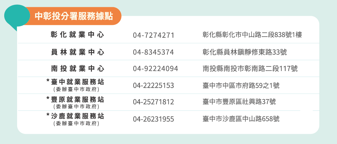 本分署所轄各就業服務據點